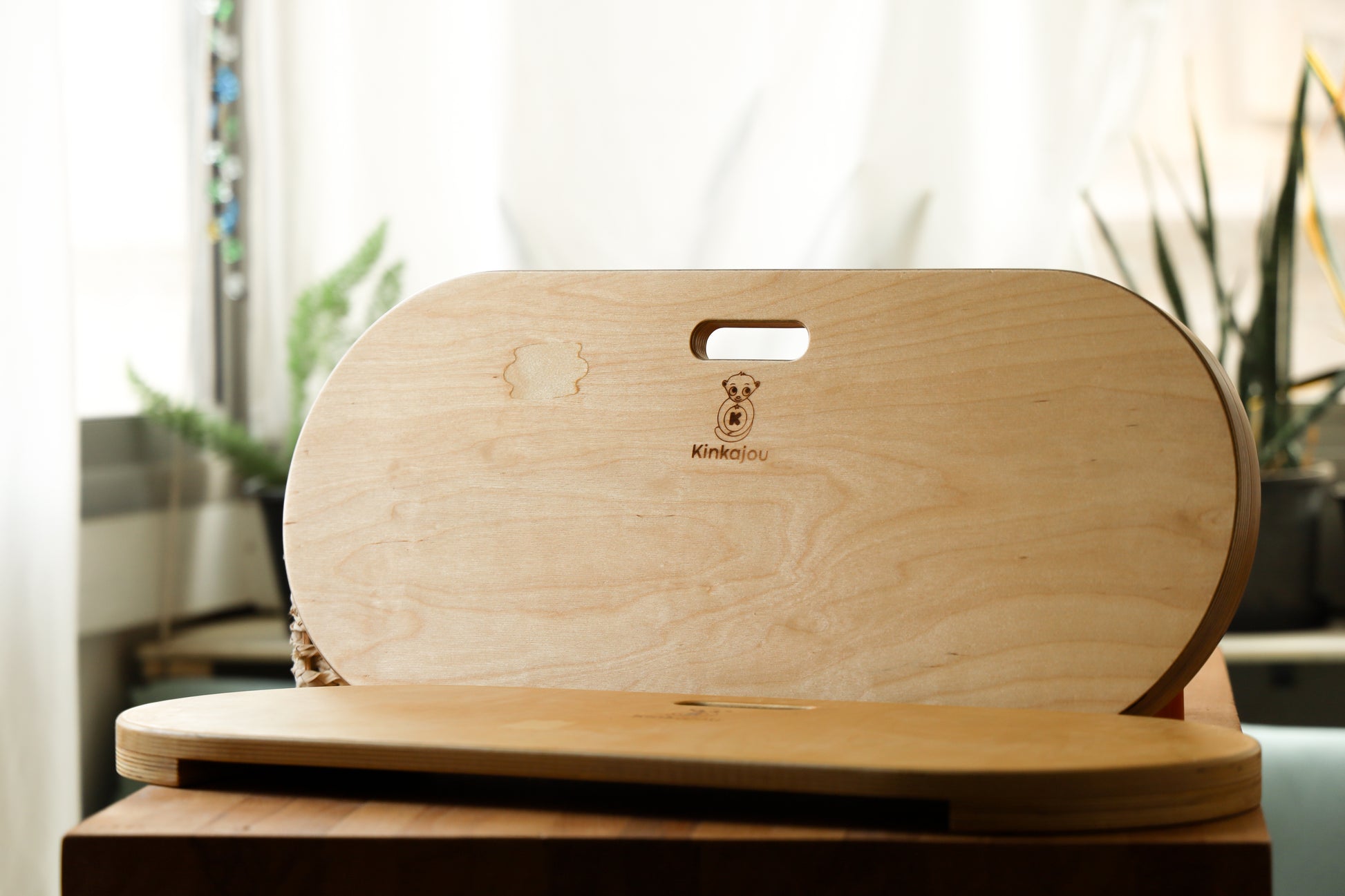 The Balance Board comes with a wooden roll covered in a soft layer to avoid slipping on tiles or wooden floors.