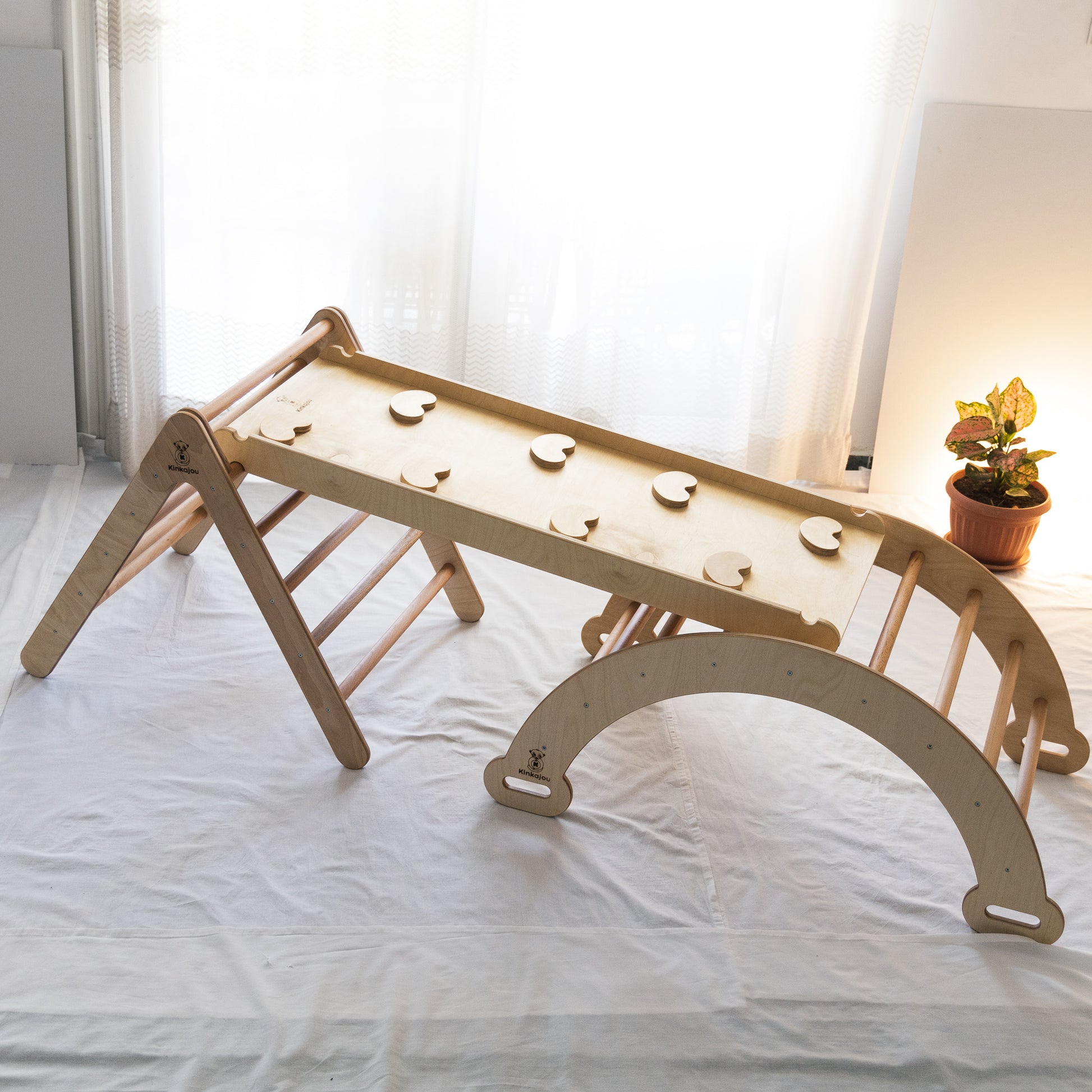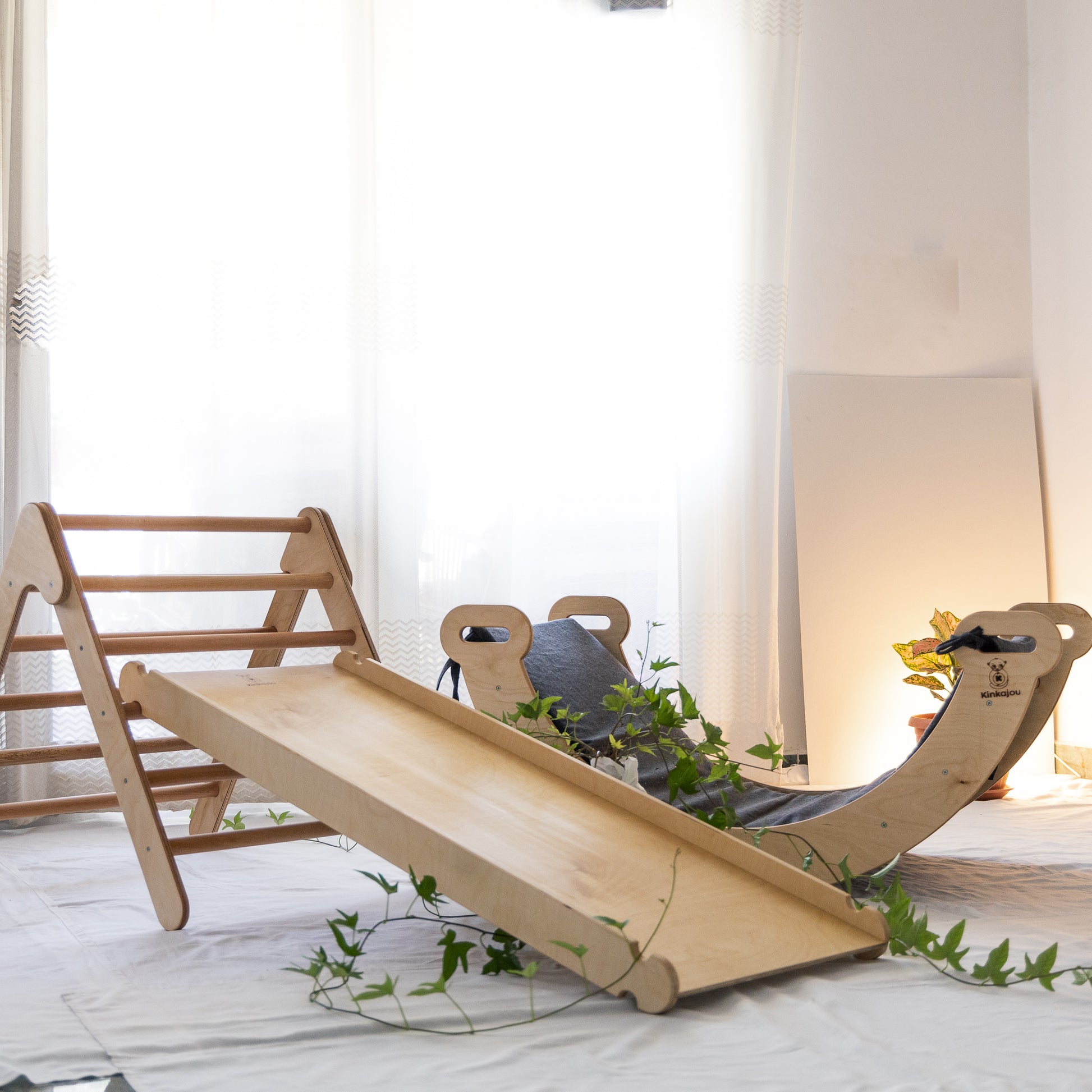 The climber's Package combines the Rocker-Climber, Pikler-Triangle and slide. When you purchase these 3 toys as a set, there is a discount of 30% on the slide.